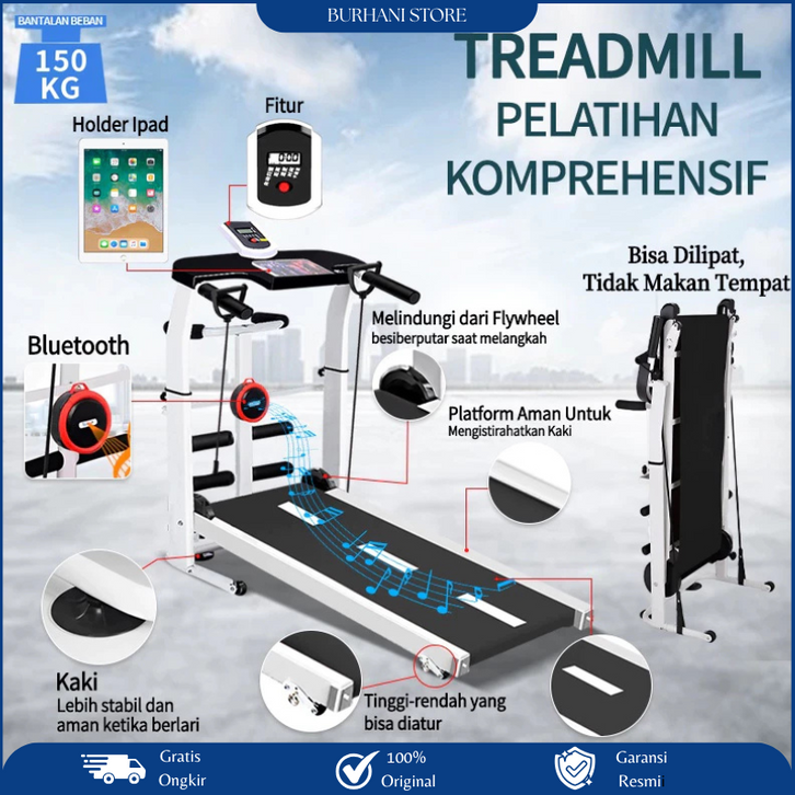 Treadmill Manual Elektrik Bodimax Multifungsi 15 in 1 Listrik Alat Fitness Murah Sonix Lipat Alat Gym