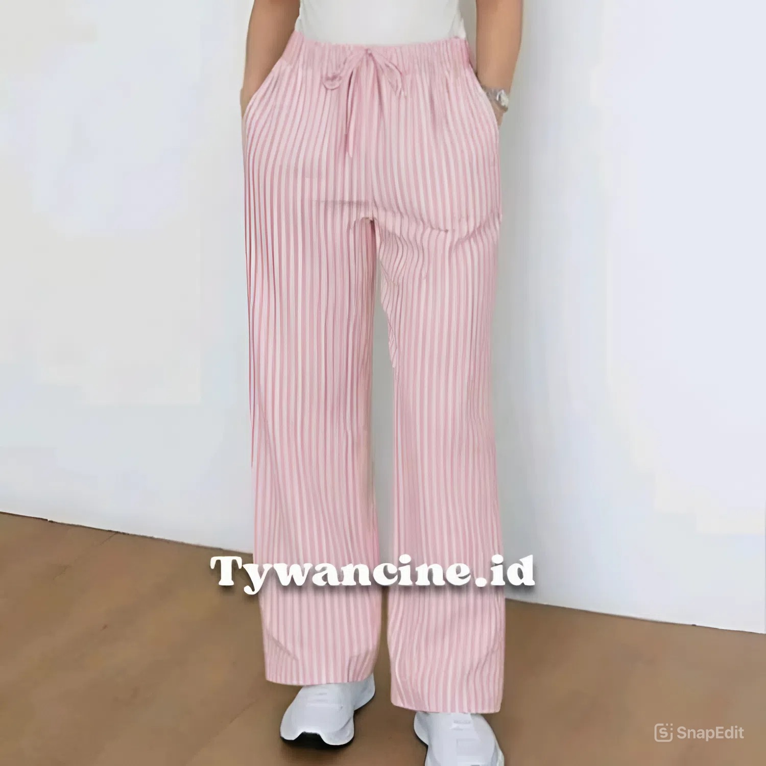 Stripe Pants Celana Kulot Panjang Wanita Highwaist Motif Garis-Garis Stripe Bangkok Celana Formal Casual Santai Murah