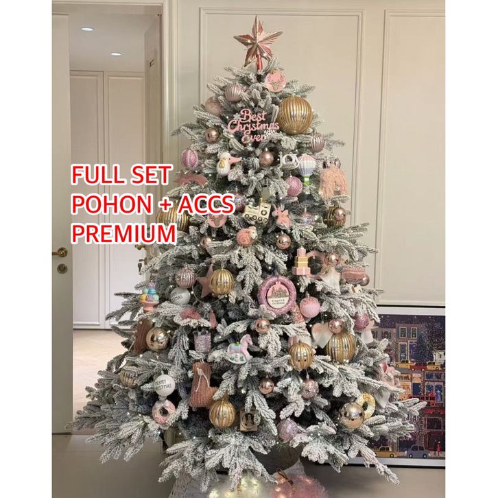 Pohon natal 150cm 210 cm besar pink FULL SET premium christmas tree jarum salju lengkap dengan hiasan dekorasi natal