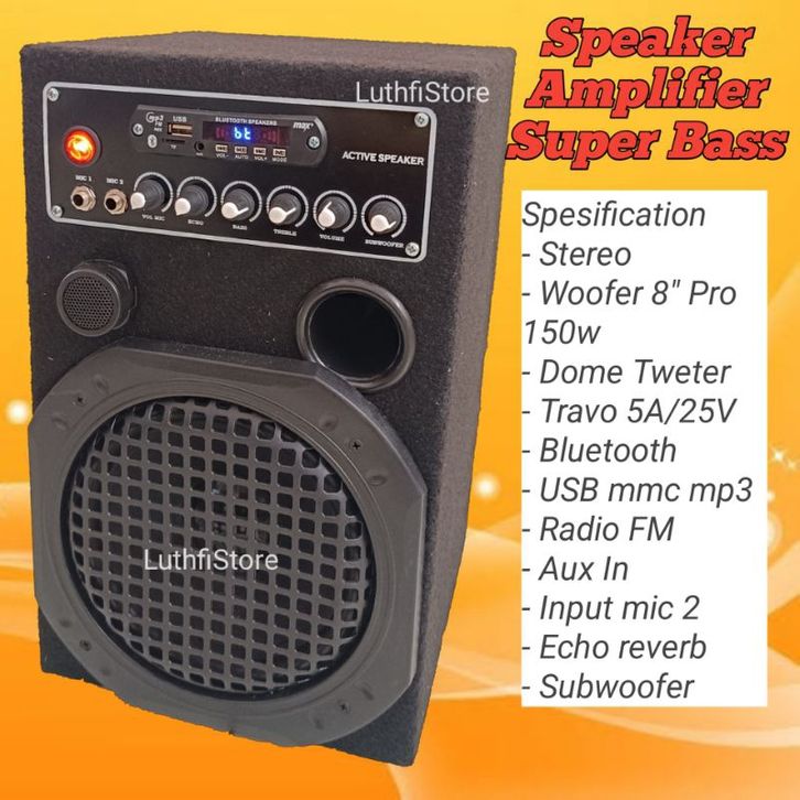 SPEAKER AKTIF BLUETOOTH KARAOKE SUPER BASS MIC ECHO RAKITAN 8 INCH COMBO 5A SOCKET OUTPUT PASIF STEREO SPEAKER AMPLIFIER