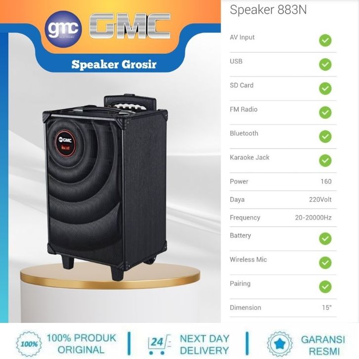 SPEAKER GMC 883N PORTABLE SPEAKER 15 INCH GRATIS 1 MIC WIRELLES 883N BT