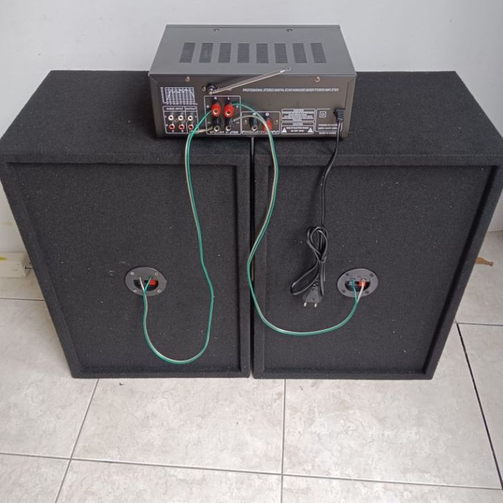 PAKET SPEAKER KAROKE BLUETOOTH 12 INCH DOBLE TWITTER KOTAK POWER MIXER EQUALIZER HIJAU