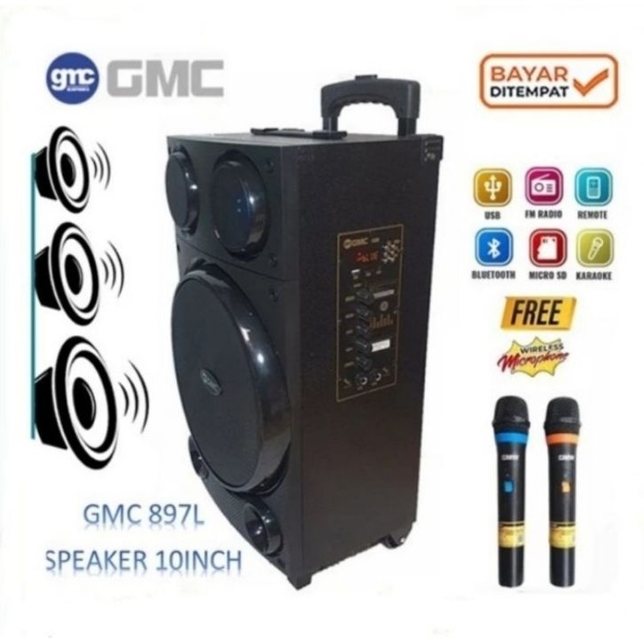 BATAM - GMC 897L 897 L SPEAKER PORTABLE BLUETOOTH KAYU 10 INCH 2 MIC WIRELESS SUARA MANTAP