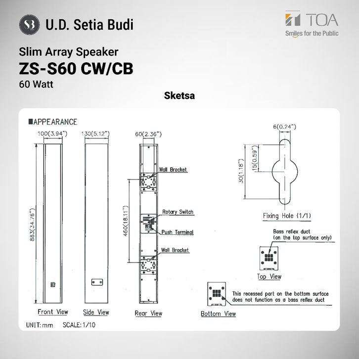 TOA SLIM ARRAY SPEAKER ZS S60 CW/CB ASLI BERGARANSI