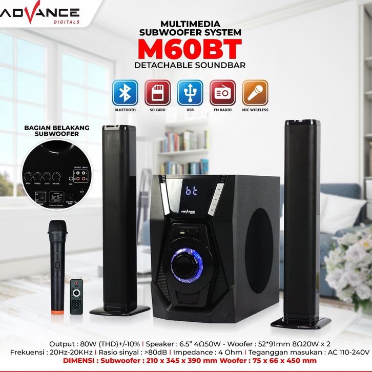 ADVANCE M12BT/M15BT/M60BT - SPEAKER STEREO BLUETOOTH XTRA BASS SUBWOOFER GARANSI RESMI 1 TAHUN