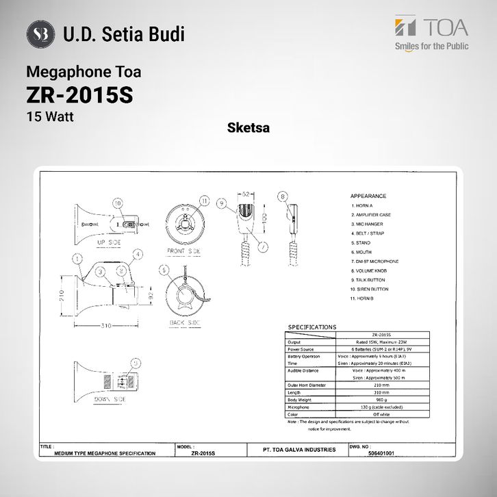 TOA MEGAPHONE ZR-2015S 15 WATT DENGAN SIRINE/WHISTLE