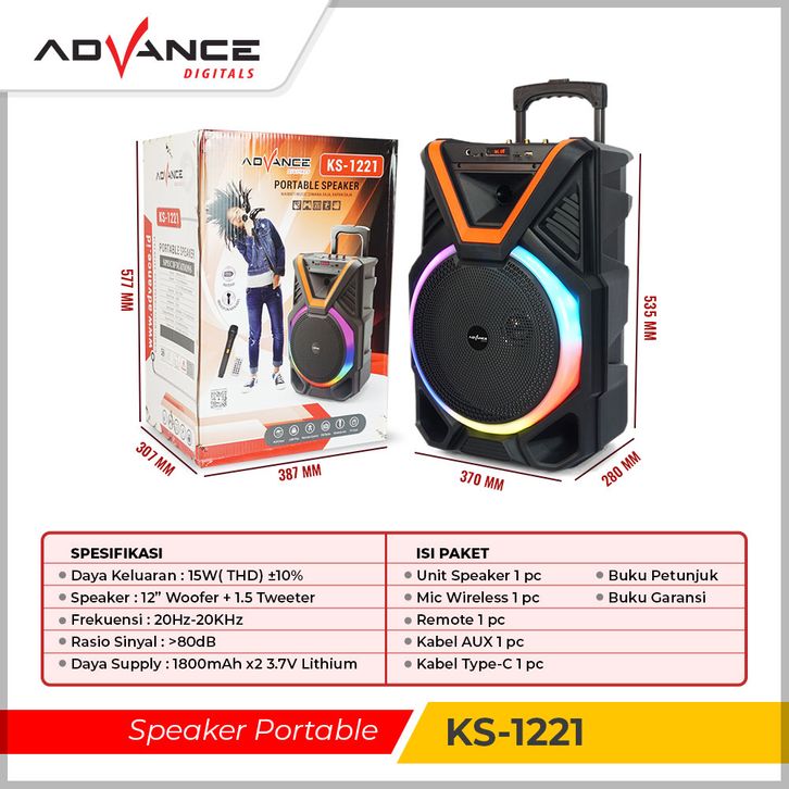 【BISA DIKIRIM HARI INI】ADVANCE SPEAKER BLUETOOTH KARAOKE TWS 12INCH+2XMIC WIRELESS 1221