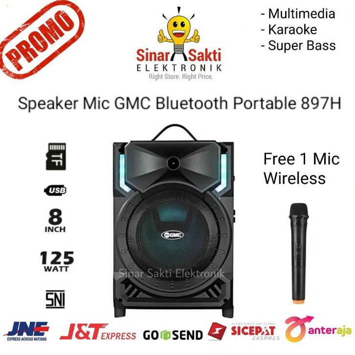 SPEAKER MIC GMC BLUETOOTH PORTABLE 897H 897 H 8 INCH KARAOKE SUPER BASS MULTIMEDIA FREE 1 MIC