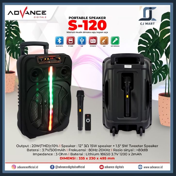 SPEAKER ADVANCE BLUETOOTH MUSIC & KARAOKE S-120 12" FREE MIC / S120 FREE MIC WIRELESS