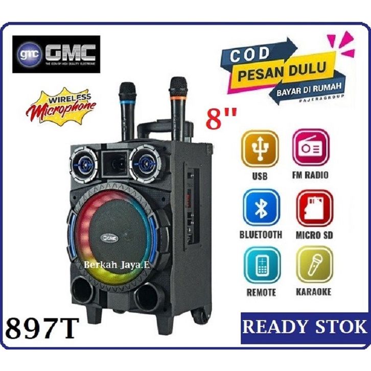 SPEAKER PORTABLE GMC 897T SPEAKER BLUETOOTH 8 INCH FREE 2 MIC WIRELESS
