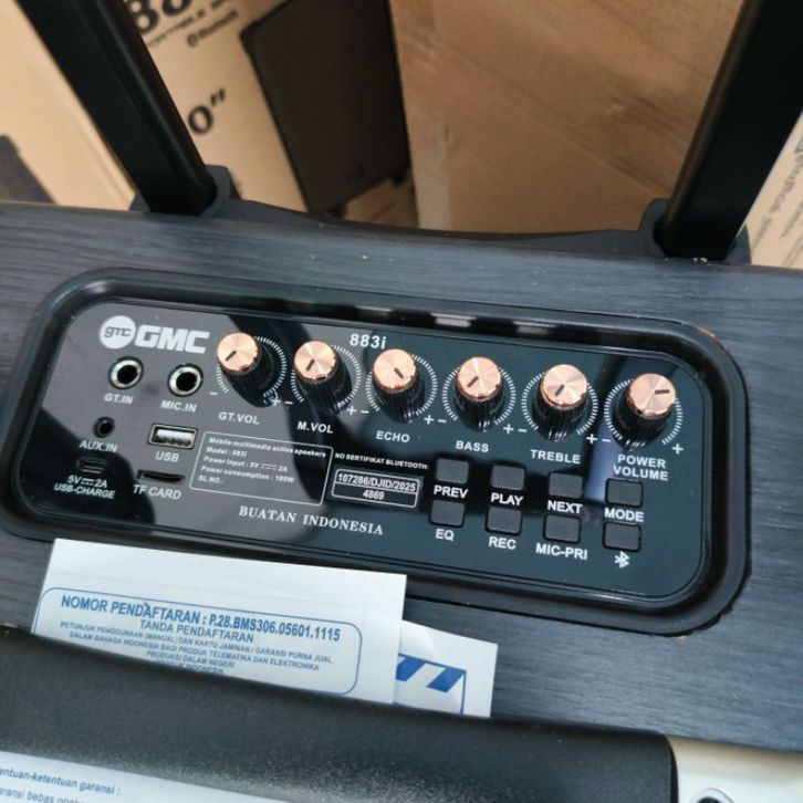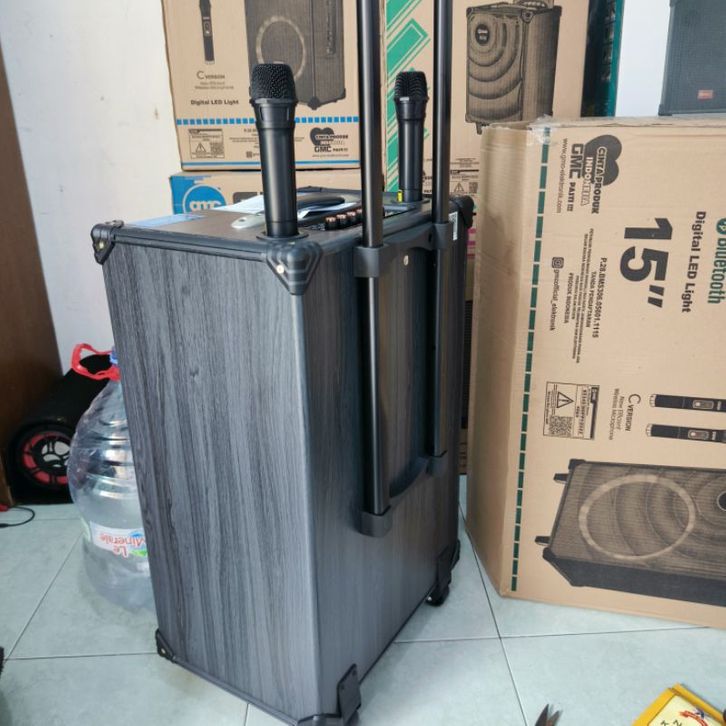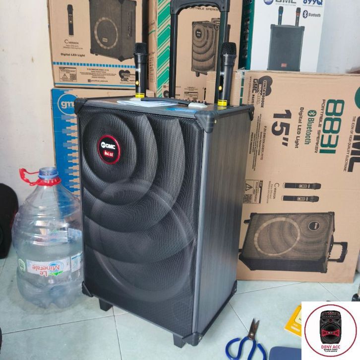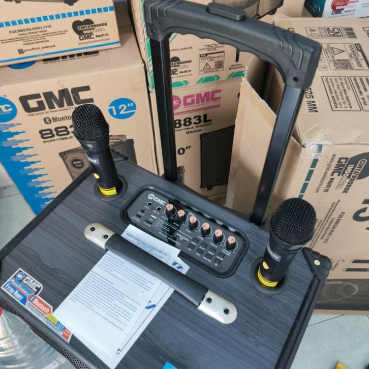 15 INCHI SPEAKER GMC 883I GRATIS MIC WIRELESS 2 PORTABEL