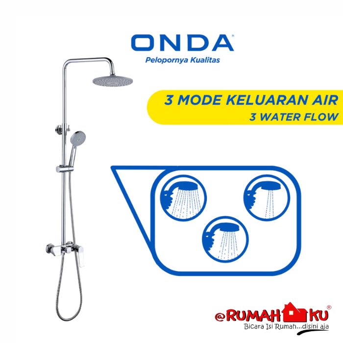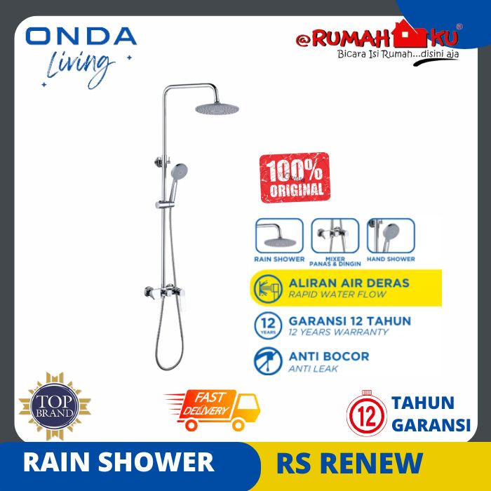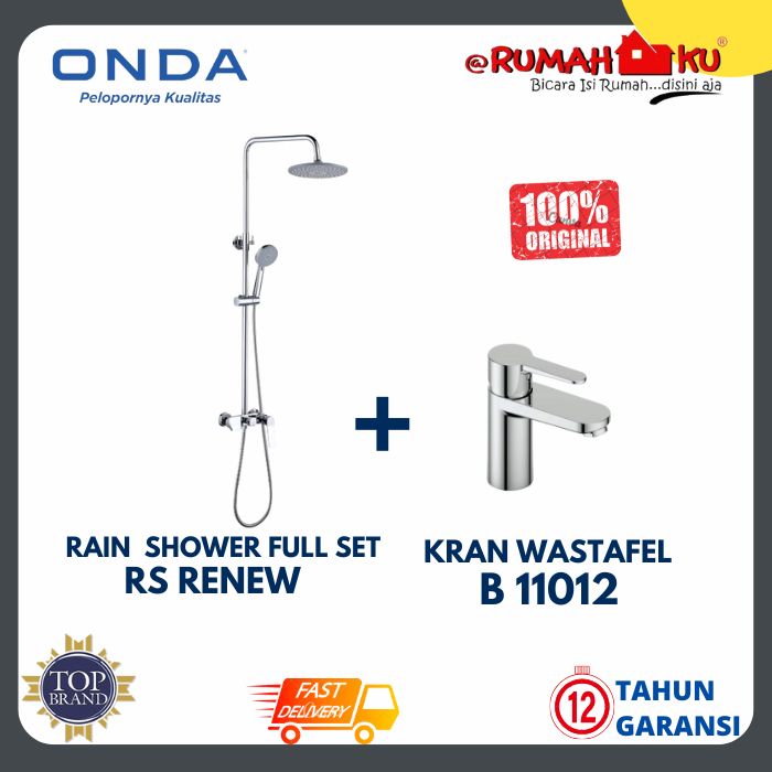 PAKET ONDA RAIN SHOWER TIANG KAMAR MANDI FULL SET KRAN PANAS DINGIN KUNINGAN ANTI BOCOR RS RENEW AIR + KRAN WASTAFEL PAN