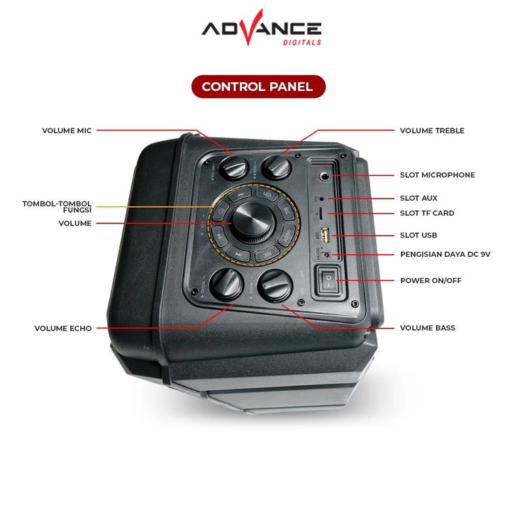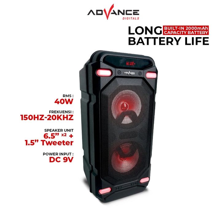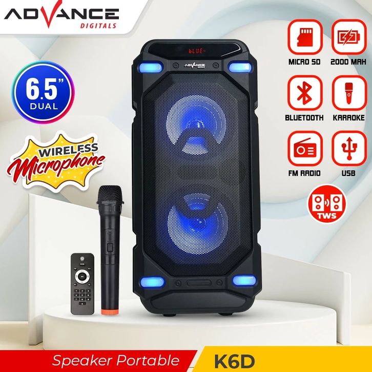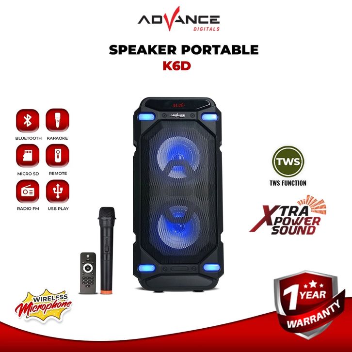 ADVANCE K6D SPEAKER BLUETOOTH HIFI KARAOKE WIRELESS PORTABLE SUPER BASS AKTIF BONUS MIC WIRELESS