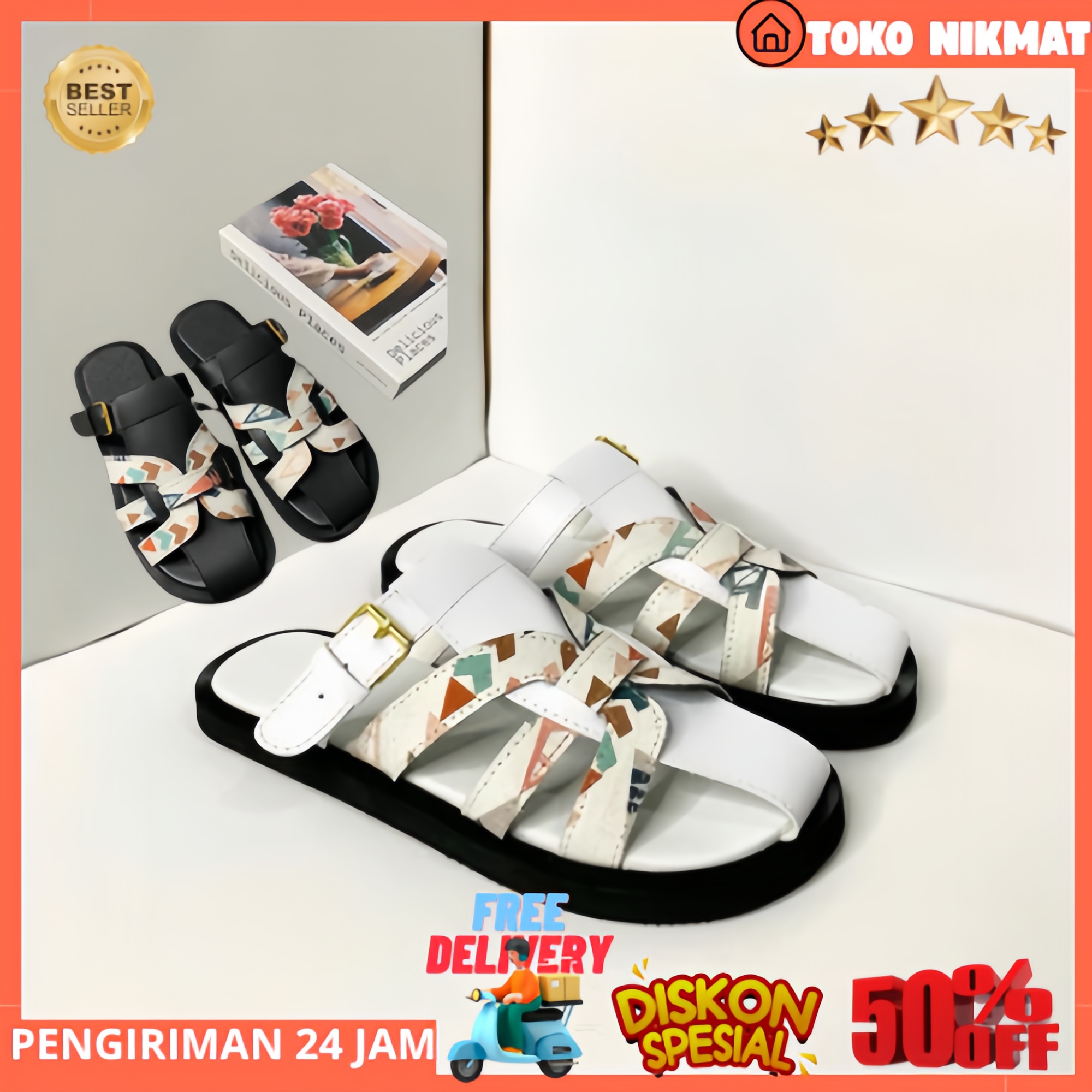 Sandal Wanita Kekinian Sandal Cewek Kekinian Heels Wanita Kiara Sandal Brongsong Putih Dan Hitam Sandal Wanita Korean St