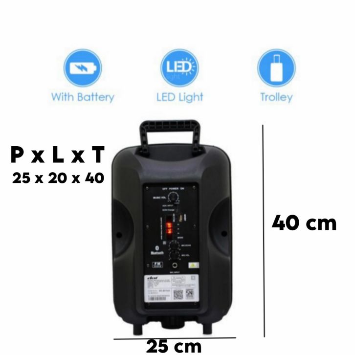 SPEAKER PORTABLE DAT 8 INCH DT-815 AS 2 MIC WIRELESS FREE TRI SPEAKER