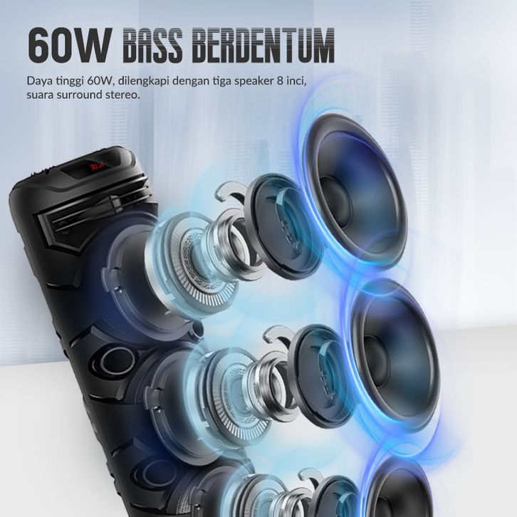 【SUPER BASS】MAIKET SPEAKER JUMBO BLUETOOTH PORTABEL KARAOKE BESAR SUPER BASS 8 INCH X3 NIRKABEL WIRELESS 8333