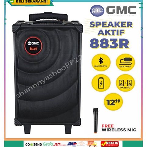 SPEAKER PORTABLE AMPLIMEETING BLUETOOTH GMC 883R 883 R 12IN 12INCH BONUS MIC WIRELESS/SPEAKER BLUETOOTH TERBARU 12 INCH/