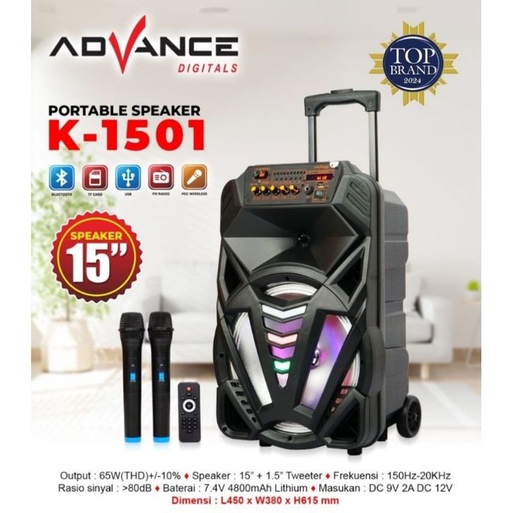 ADVANCE SPEAKER MEETING TROLY BLUETOOTH 15" K-1501 NEW DAPAT BONUS 2 MIC