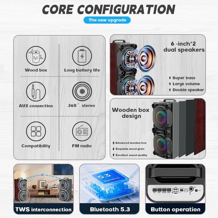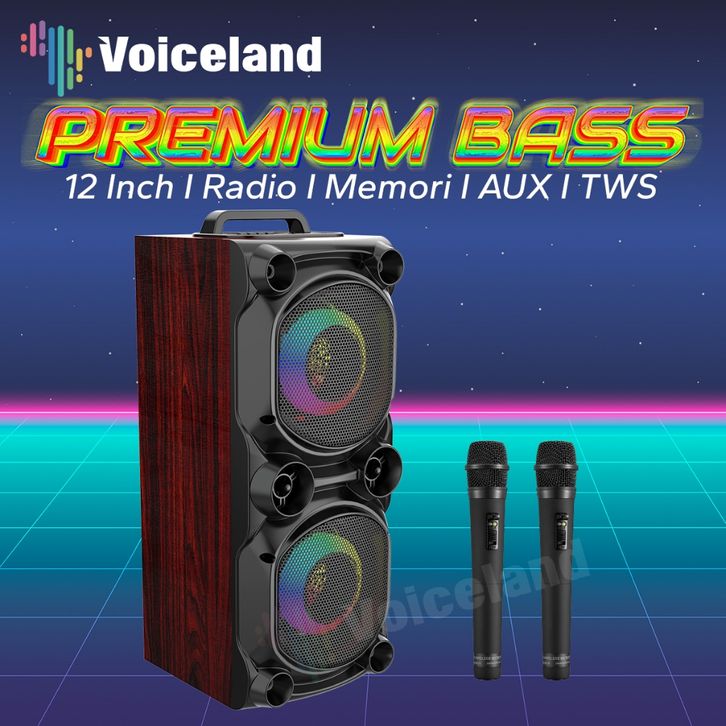 【PREMIUM BASS】SPEAKER BLUETOOTH KARAOKE BESAR SUPER BASS 12 INCH 2 MIC KAYU SUARA JERNIH PROTABLE WIRELESS ADVANCE SALON