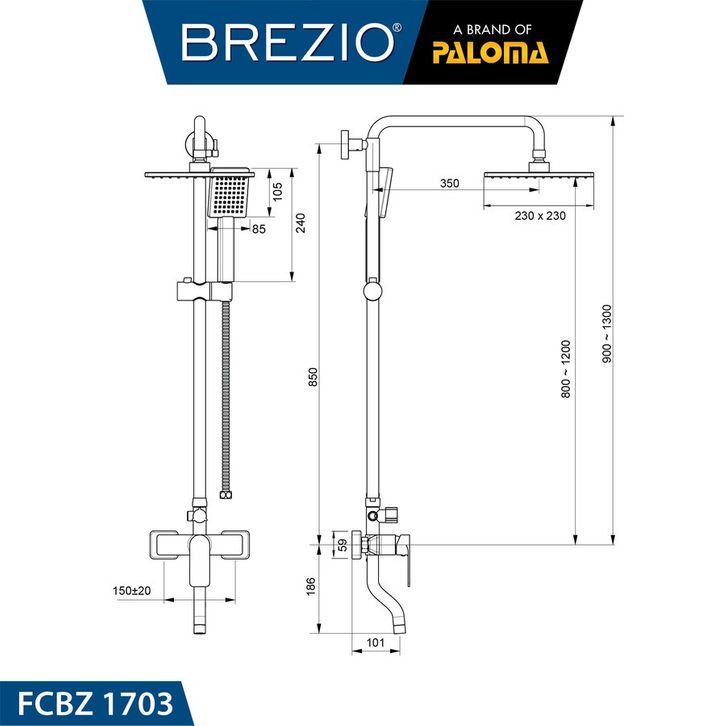 BREZIO FCBZ 1703 KERAN PANAS DINGIN SHOWER TIANG SET COLUMN CHROME