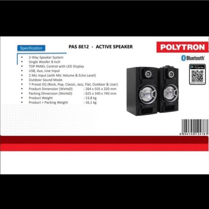 SPEAKER AKTIF POLYTRON PAS 8E12 PAS8E12 BLUETOOTH