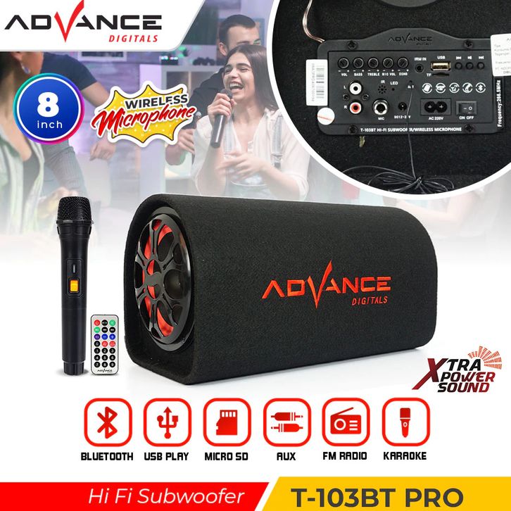ADVANCE T103BT PRO SPEAKER BLUETOOTH KARAOKE WIRELESS SUBWOOFER SUPER BASS AKTIF BONUS MIC WIRELESS
