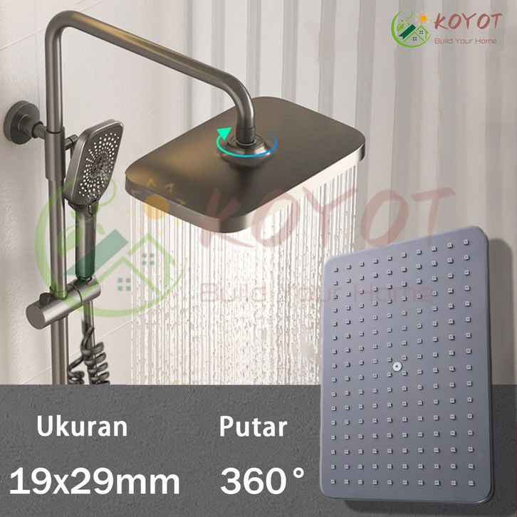 KOYOT DESAIN TUTS PIANO SHOWER KAMAR MANDI FULL SET SUMBER TUNGGAL PERSEGI ABU-ABU 4 WAYS / JET SHOWER / HAND SHOWER MA