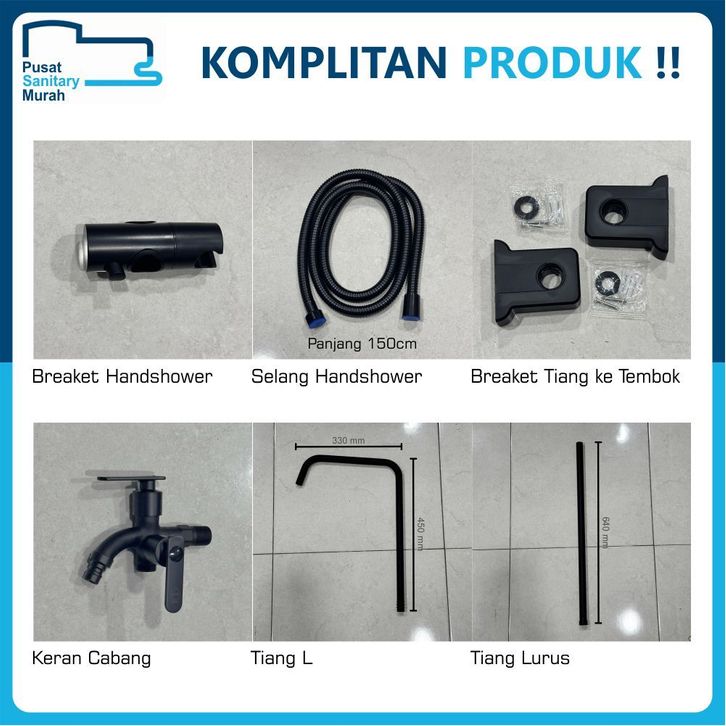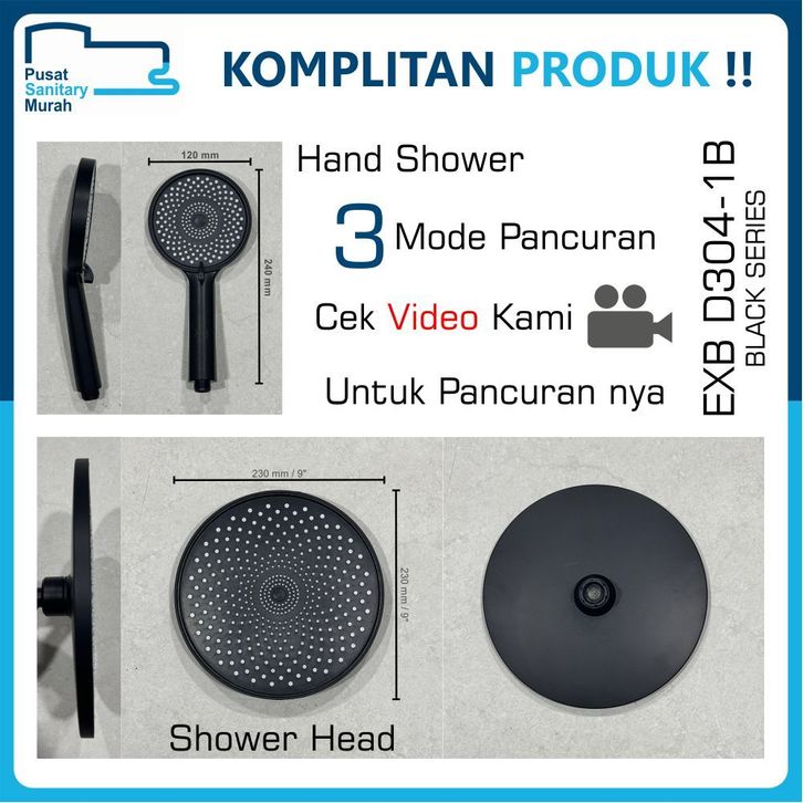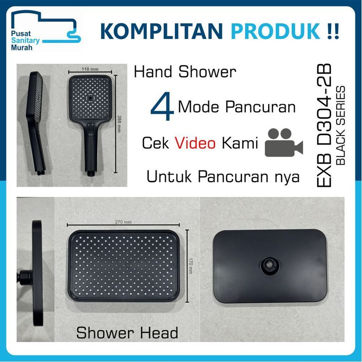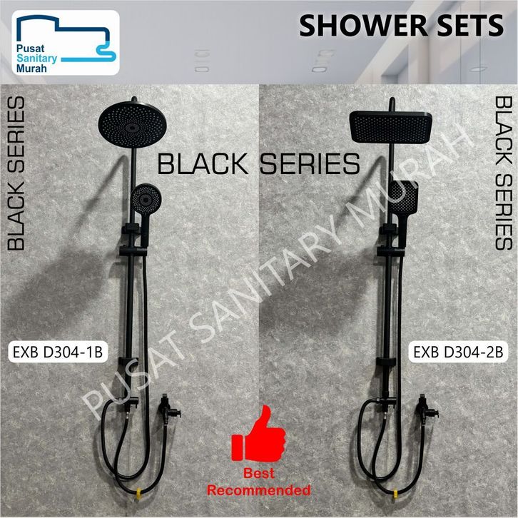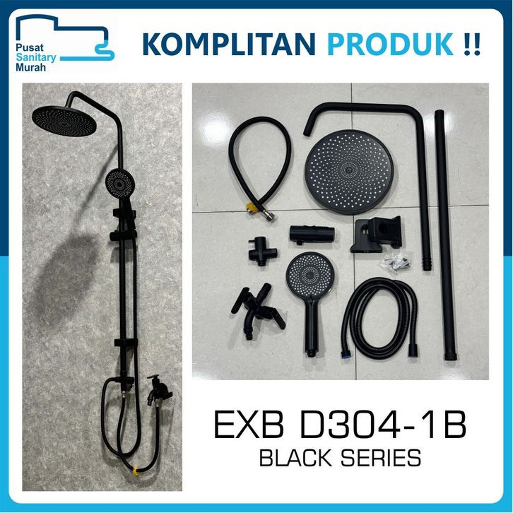 SHOWER SET MANDI DINGIN EIXO BUFALO MURAH MERIAH STAINLESS STEEL HITAM KOMPLIT MINIMALIS