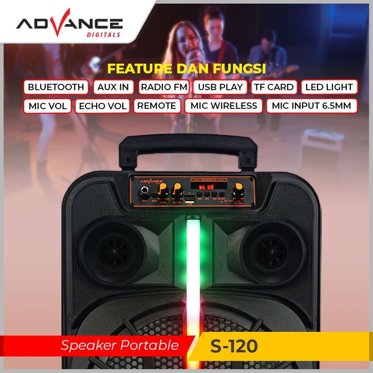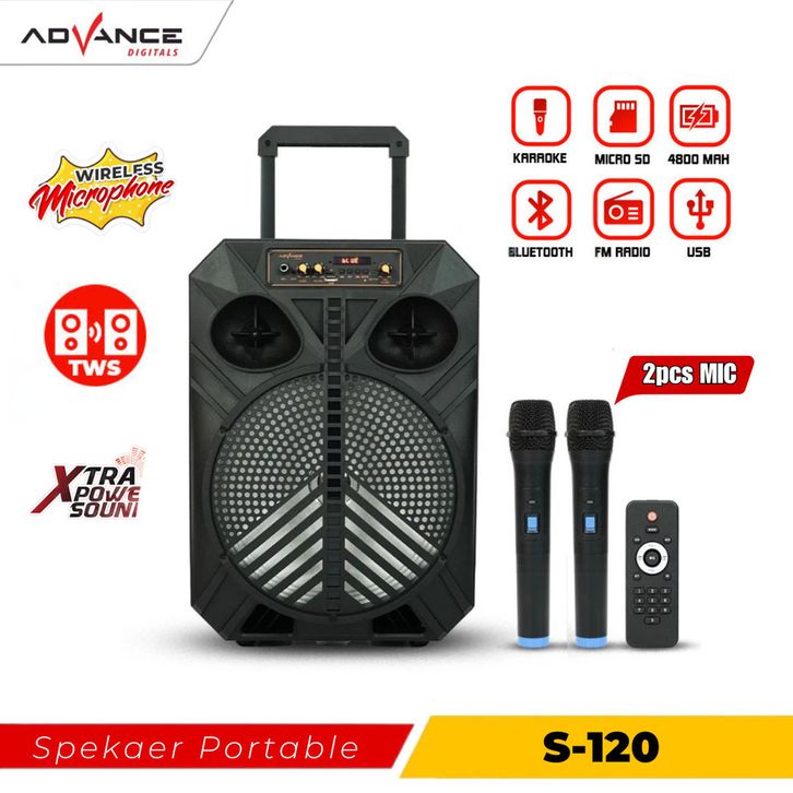 【BISA DIKIRIM HARI INI】ADVANCE SPEAKER BLUETOOTH KARAOKE PORTABLE+2XMIC WIRELESS TWS 12INCH 120