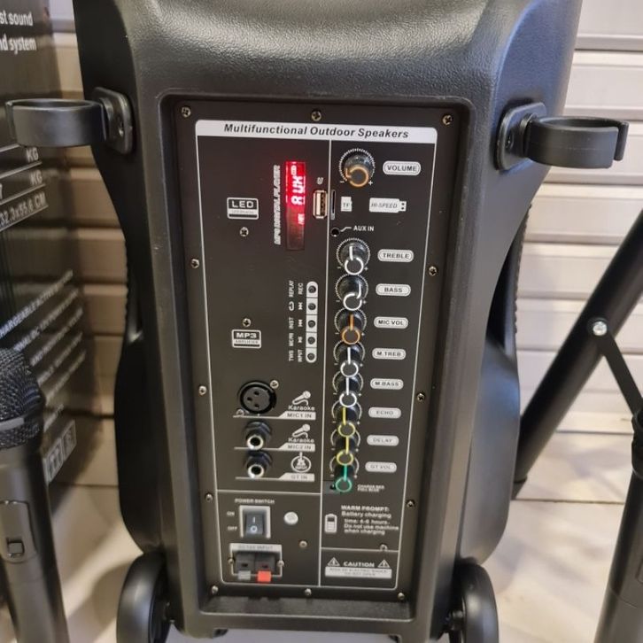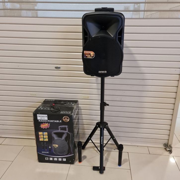 SPEAKER PORTABLE AIWA 12 INCH BONUS 2 MIC WIRELESS DAN STENDING