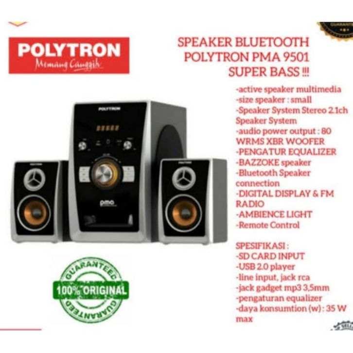 SPEAKER POLYTRON PMA 9501 USB MMC BLUETOOTH MP3 PLAYER INPUT FM RADIO ACTIVE AKTIF MURAH GARANSI