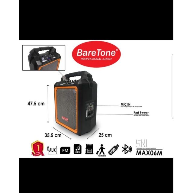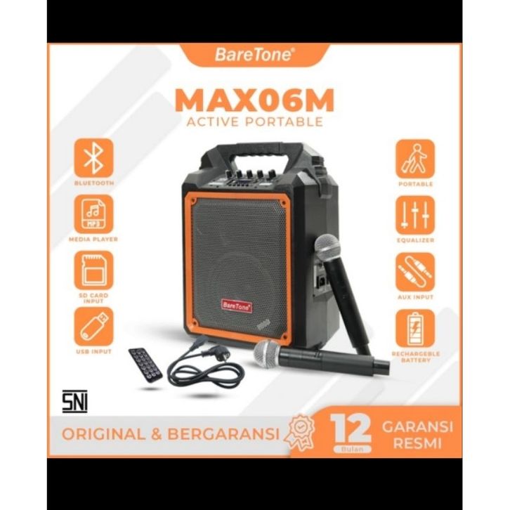SPEAKER PORTABLE WIRELESS BLUETOOTH BARETONE MAX06M 6INCH MAX 06 ORIGINAL