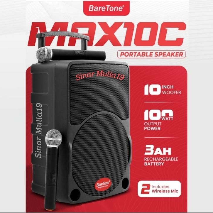 BARETONE MAX10C SPEAKER PORTABLE AKTIF 10 INCH BLUETOOTH TWS