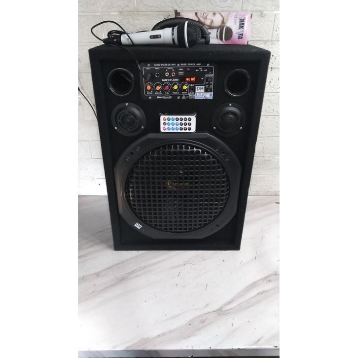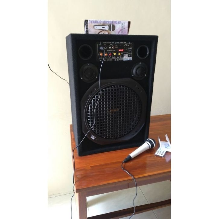 SPEAKER SINGLE AKTIF 12INCH SEMI PORTABLE BISA UNTUK AKI/BATRE 12-24VOLT, BLUETOOTH PLUS MIC KABEL.