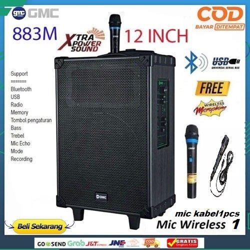 SPEAKER GMC 883M 12 INCH PORTABEL/AMPLI MEETING BLUETOOTH 12 INCH FREE MIC WERELES 1 PCS MIC KABEL 1 PCS