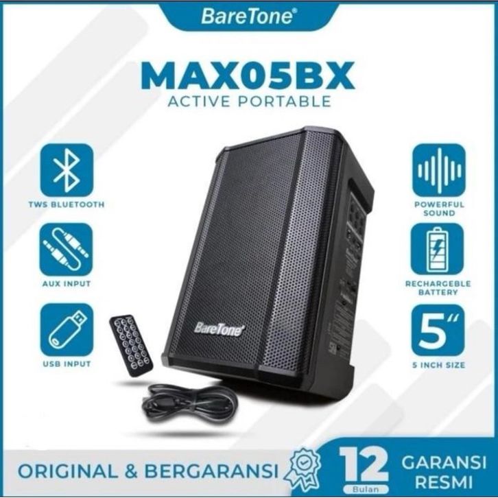 BARETONE SPEAKER PORTABLE MAX05BX 5INCH ORIGINAL 100% GARANSI RESMI