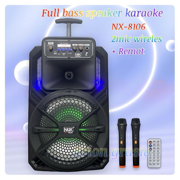 BIG BASS SPEAKER KARAOKE NX-8107 2MIC WIRELESS SPEAKER BLUETOOTH PORTABEL 8INCH