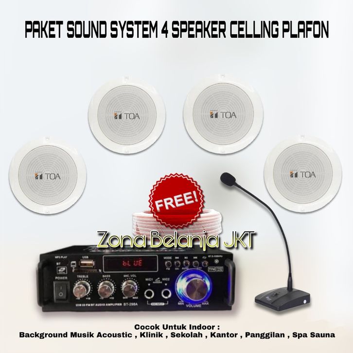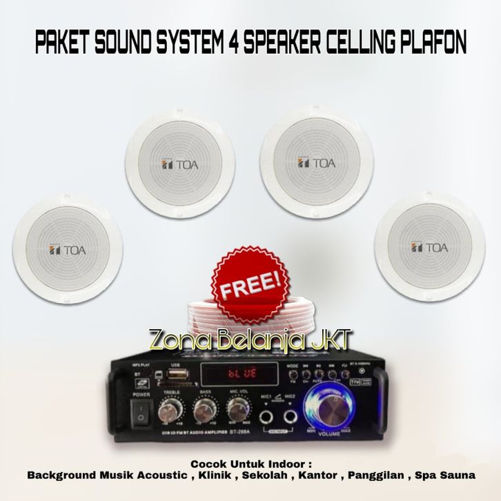 PAKET SOUND SYSTEM TOA CEILING PLAFON 4 SPEAKER CAFE RESTO KLINIK PANGGILAN AMPLI USB BLUETOOTH (S-3)