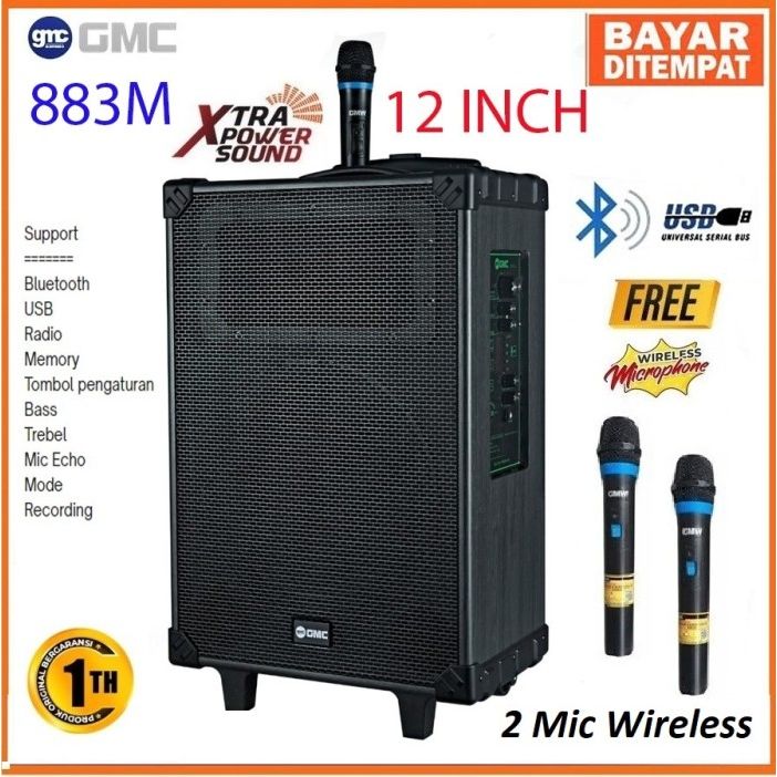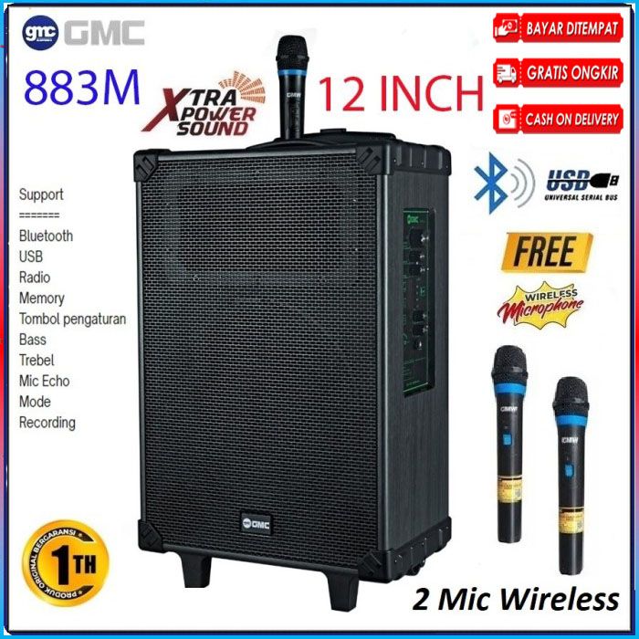 SPEAKER GMC 883M 12 INCH JUMBO PORTABEL/AMPLI MEETING BLUETOOTH FREE MIC WIRELES 1PCS SUPER BASS 12 INCH