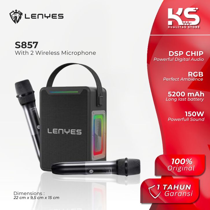 LENYES KARAOKE SPEAKER BLUETOOTH RGB TWS V5.3 150WATT WITH DUAL MICROPHONE HIFI STEREO S857