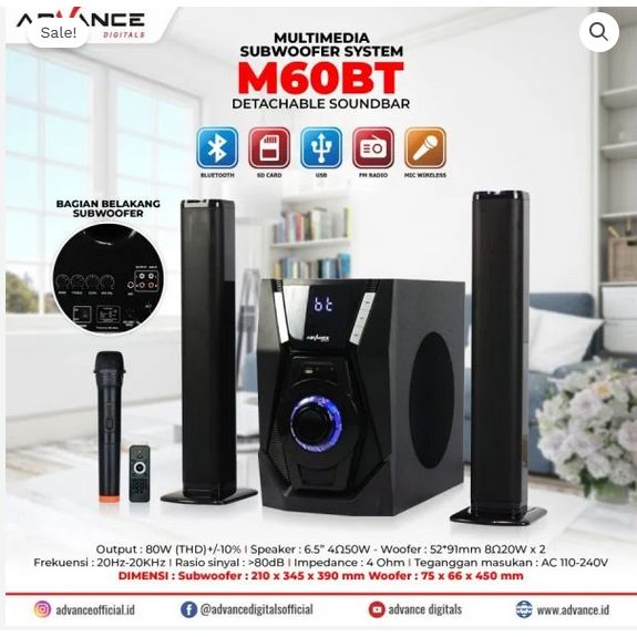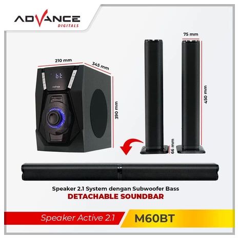 ITSTORE SPEAKER ADVANCE M60BT SPEAKER AKTIV SOUNDBAR BLUETOOTH / SUBWOOFER 2IN1 SPEAKER MULTIMEDIA+FREE MIC