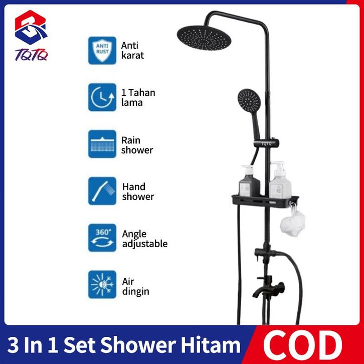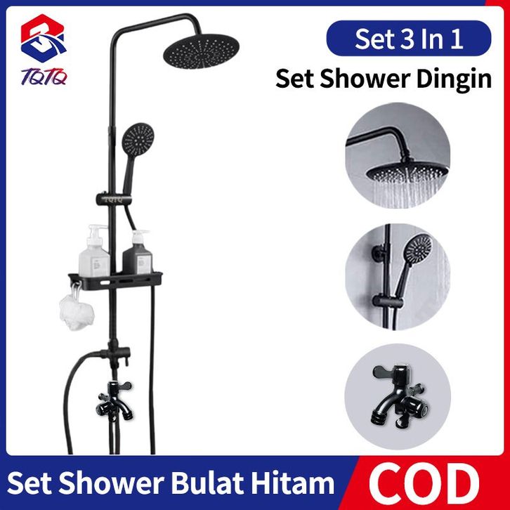 TQTQ PAKET SHOWER KAMAR MANDI BULAT STAINLESS WALL MOUNTED HITAM SET