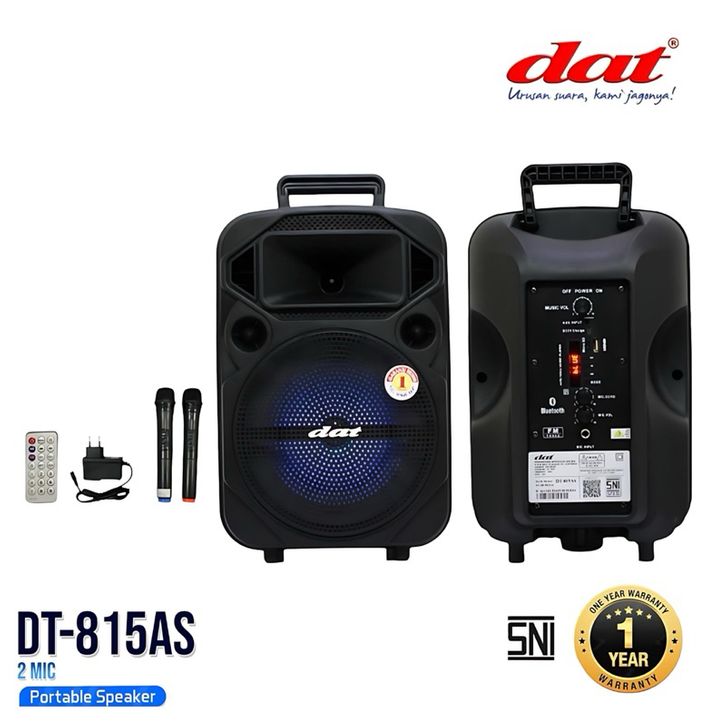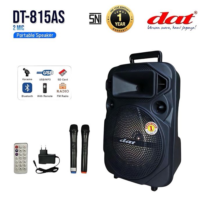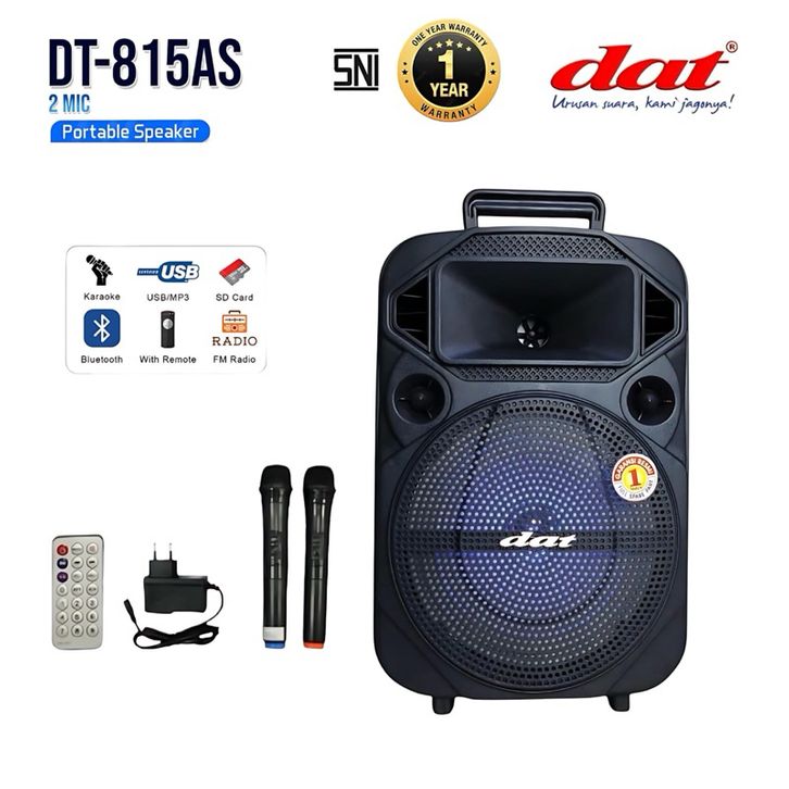 SPEAKER DAT DT-815AS 2MIC WIRELES SPEAKER BLUETOOTH PORTABEL SPEAKER AKTIF FULL BASS