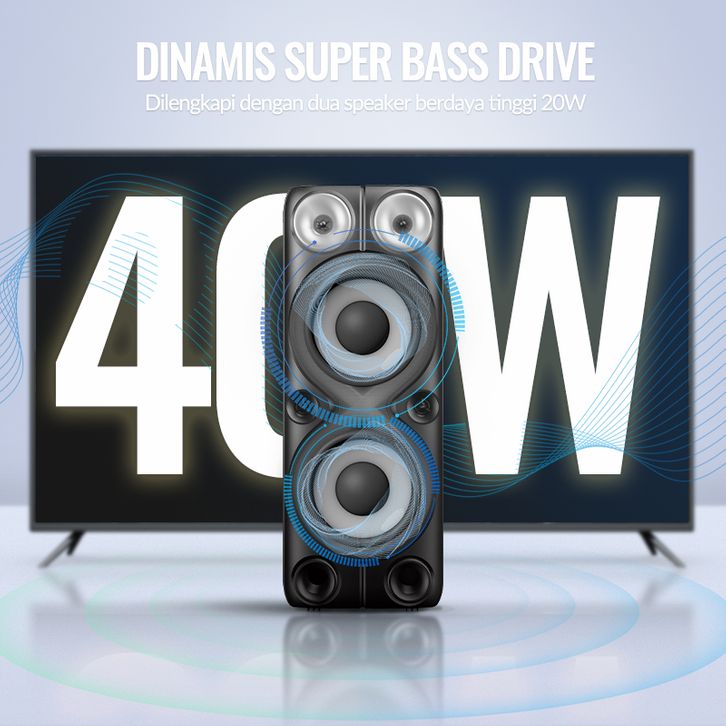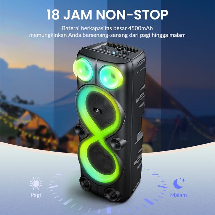 MAIKET PARTY SPEAKER BLUETOOTH KARAOKE PORTABLE SUPER BASS BESAR 2 MIC WIRELESS DUAL POWER ZQS8238