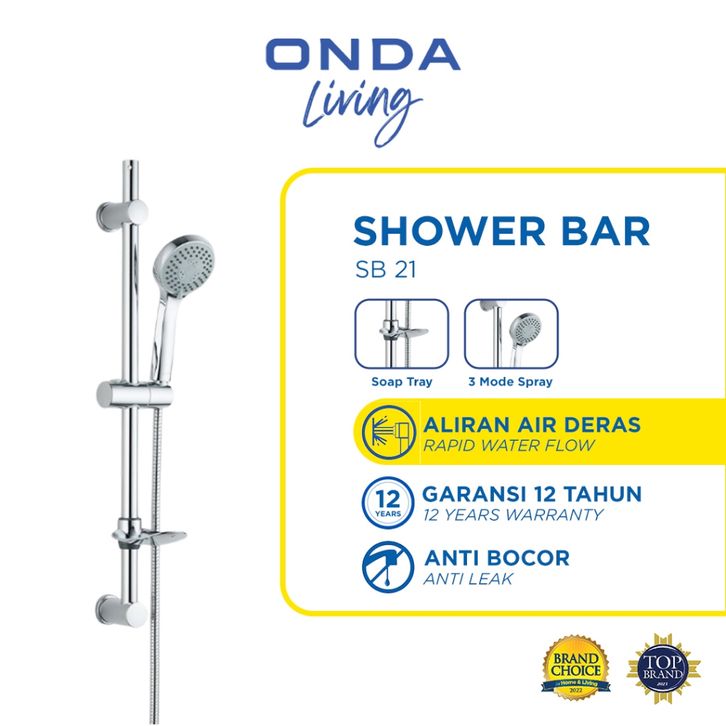 ONDA HAND SHOWER MANDI GENGGAM KEPALA SHOWER FULL SET TIANG 3 E AIR DERAS ANTI BOCOR SB 21