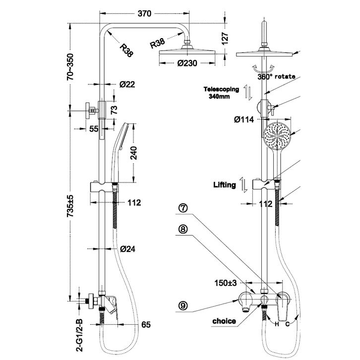 ONDA RAIN SHOWER TIANG KAMAR MANDI FULL SET KRAN PANAS DINGIN ANTI BOCOR R-FRES