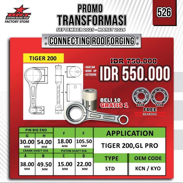 STANG SEHER CONROD FORGED FORGING CNC BRT TIGER GL PRO