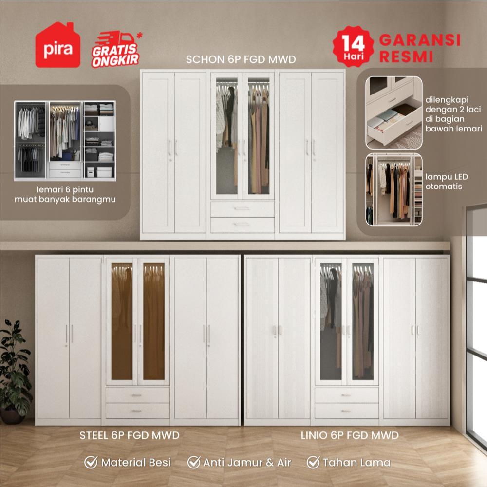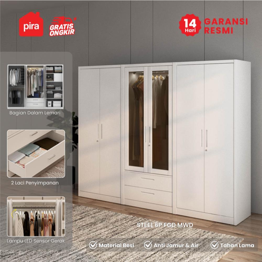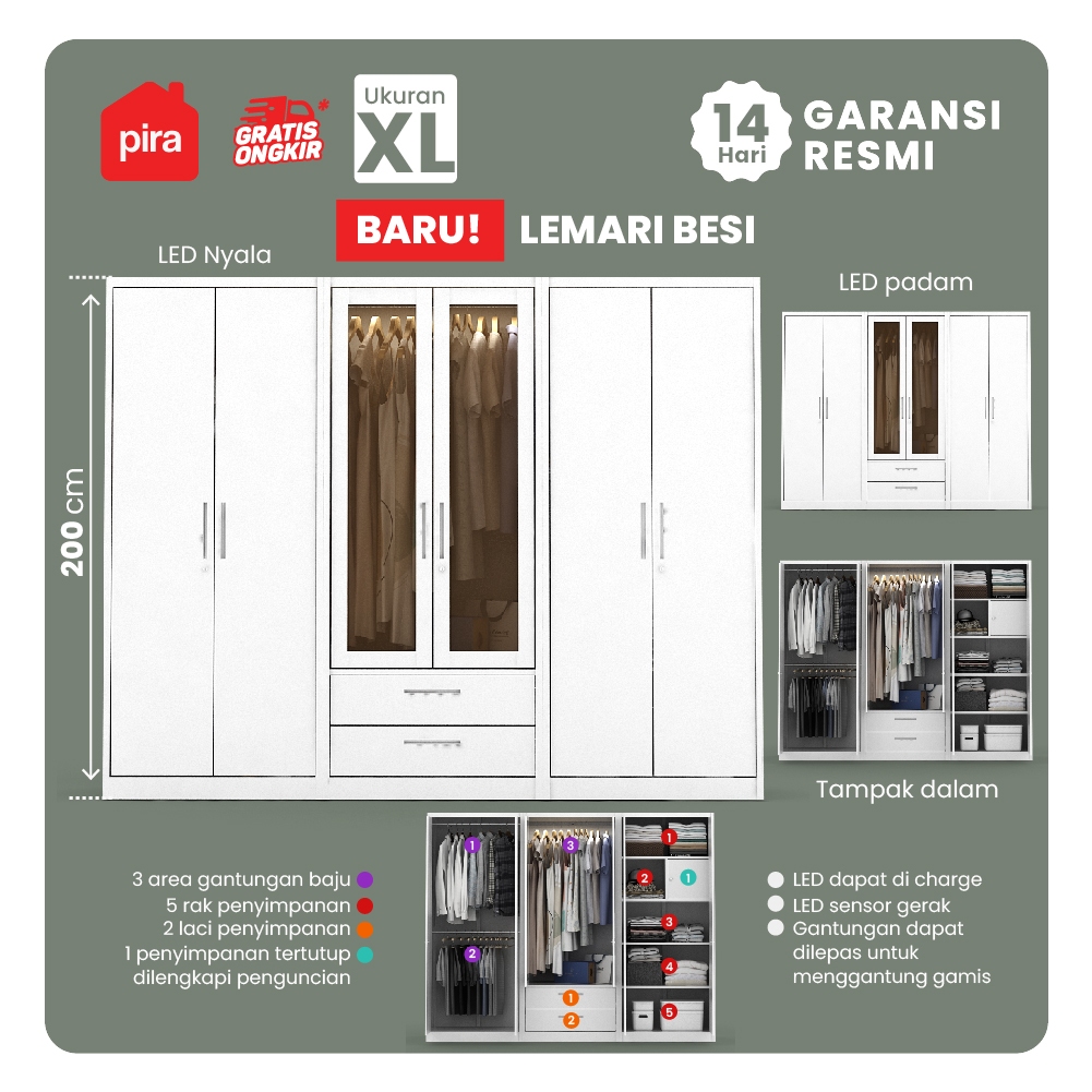 [Mall] Lemari Pakaian Besi 6 Pintu dengan Laci dan LED