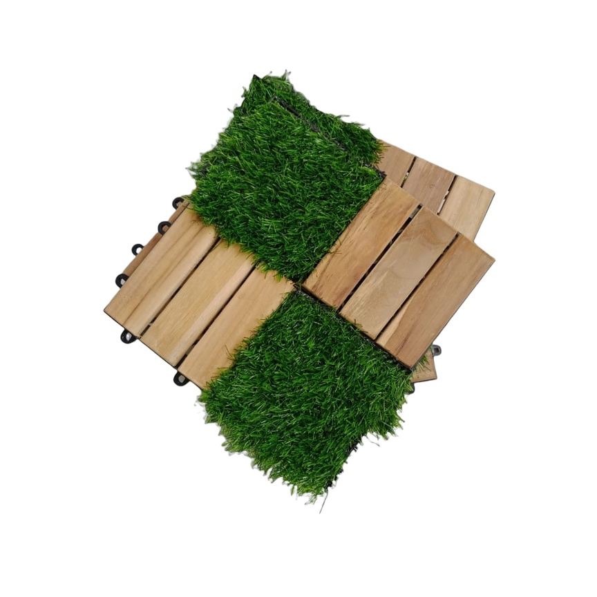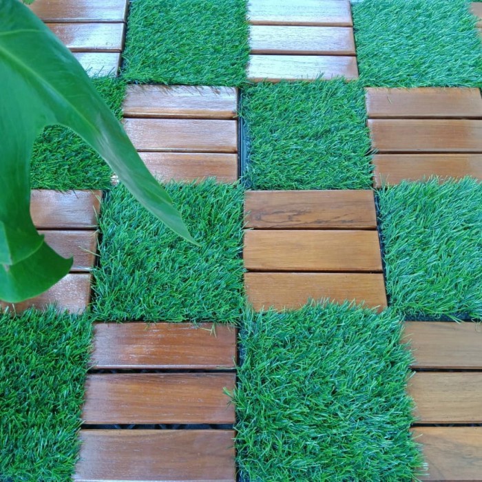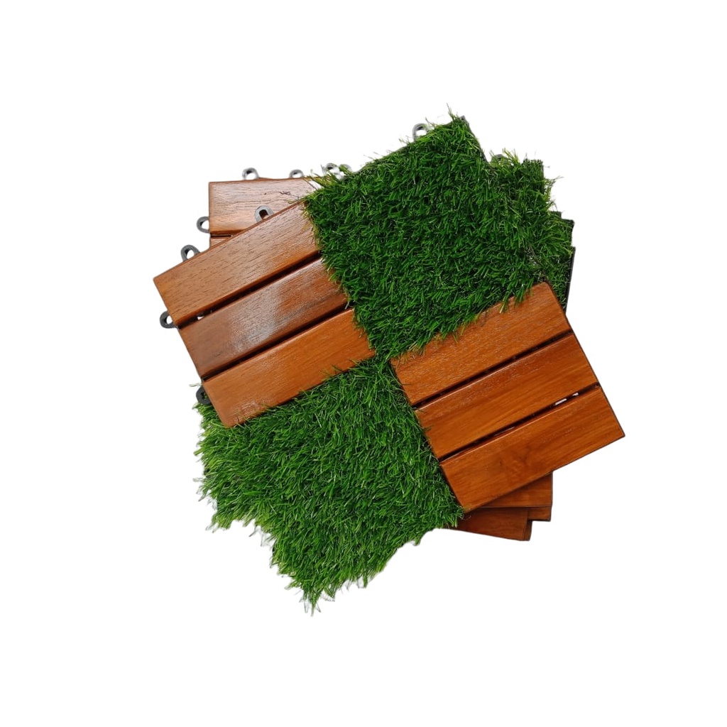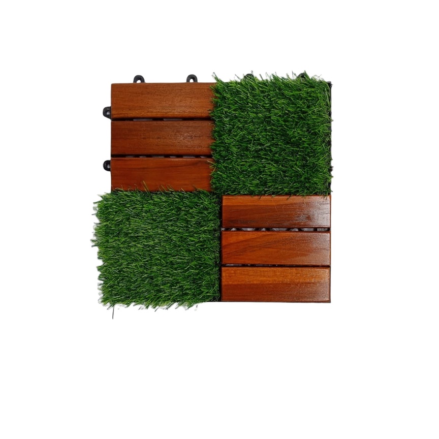 Decking Tile Motif Zigrum / Lantai Kayu Zigzag Mix Rumput