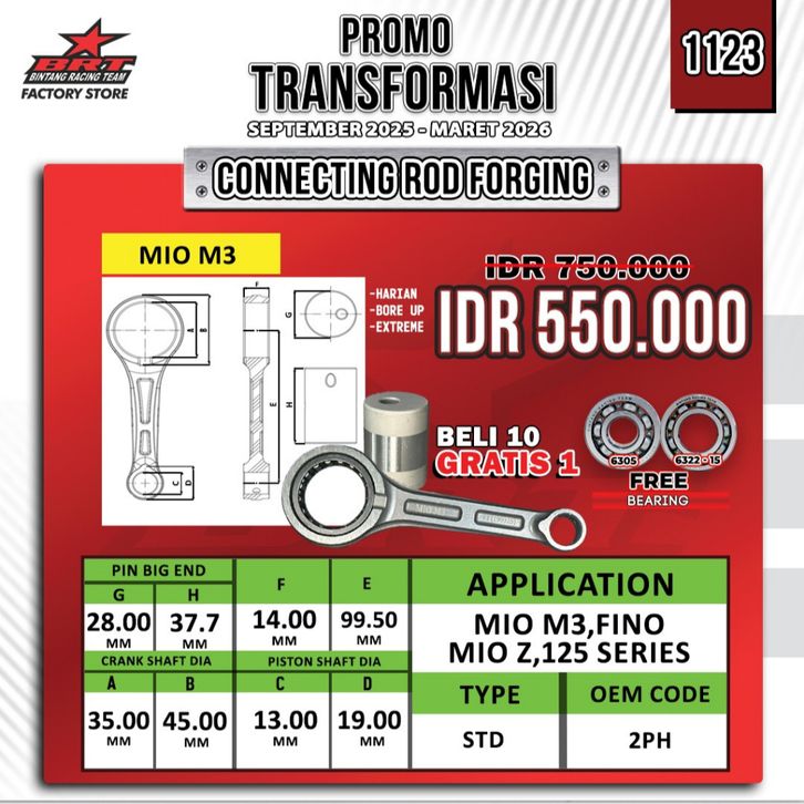 STANG SEHER CONROD FORGED FORGING CNC BRT MIO M3 FINO 125 MIO Z